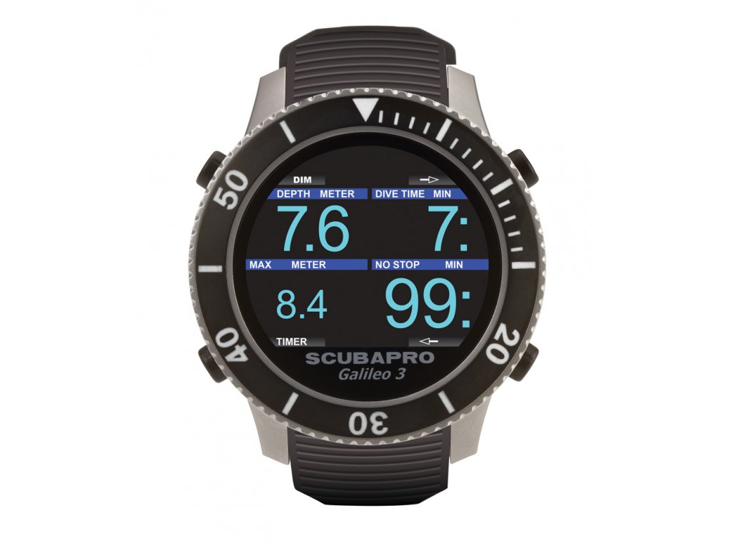 Scubapro nově nabízí moderní potápěčský počítač ve stylu hodinek v klasickém vzhledu. Zářivý barevný displej pro snadnou čitelnost SCUBAPRO Galileo 3 (G3). G3 využívá důvěryhodného designu menu a čtyř tlačítkového ovládání systému. Počítač G3 má mimořádně intuitivní ovládání režimu ponorů, dvě volby algoritmů, styly obrazovky a další personalizované možnosti správy ponorů. G3 je napájen dobíjecí lithiovou baterií aby vydržela dlouho. Pouzdro je z nerezové oceli.